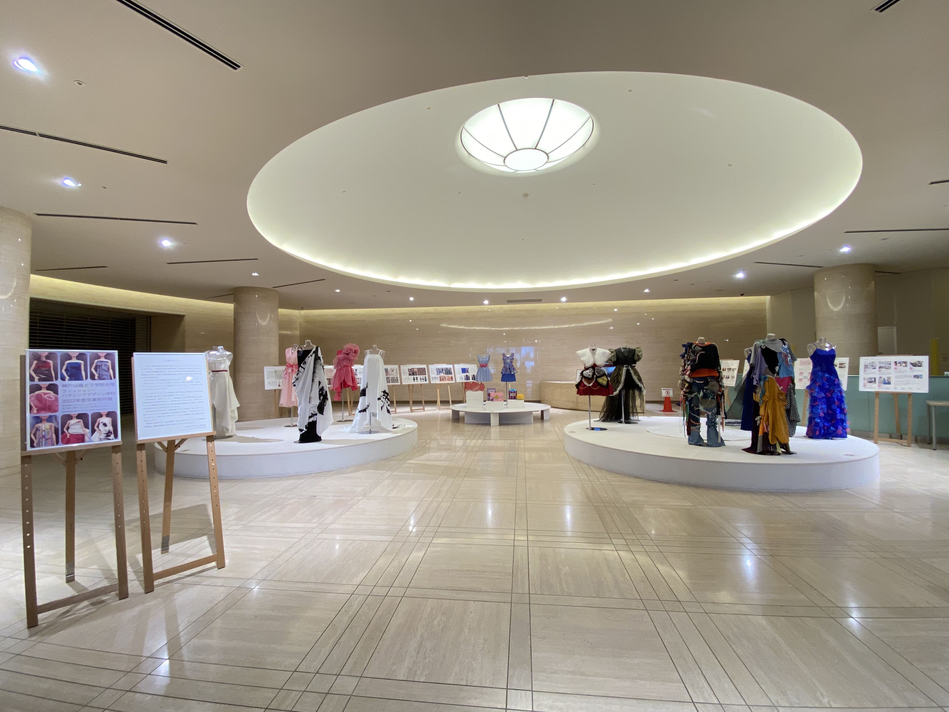 神戸ファッション美術館エントランスホールにて、人間科学部ファッション・ハウジングデザイン学科が2022年度卒業制作展を開催しています。是非ご覧ください。