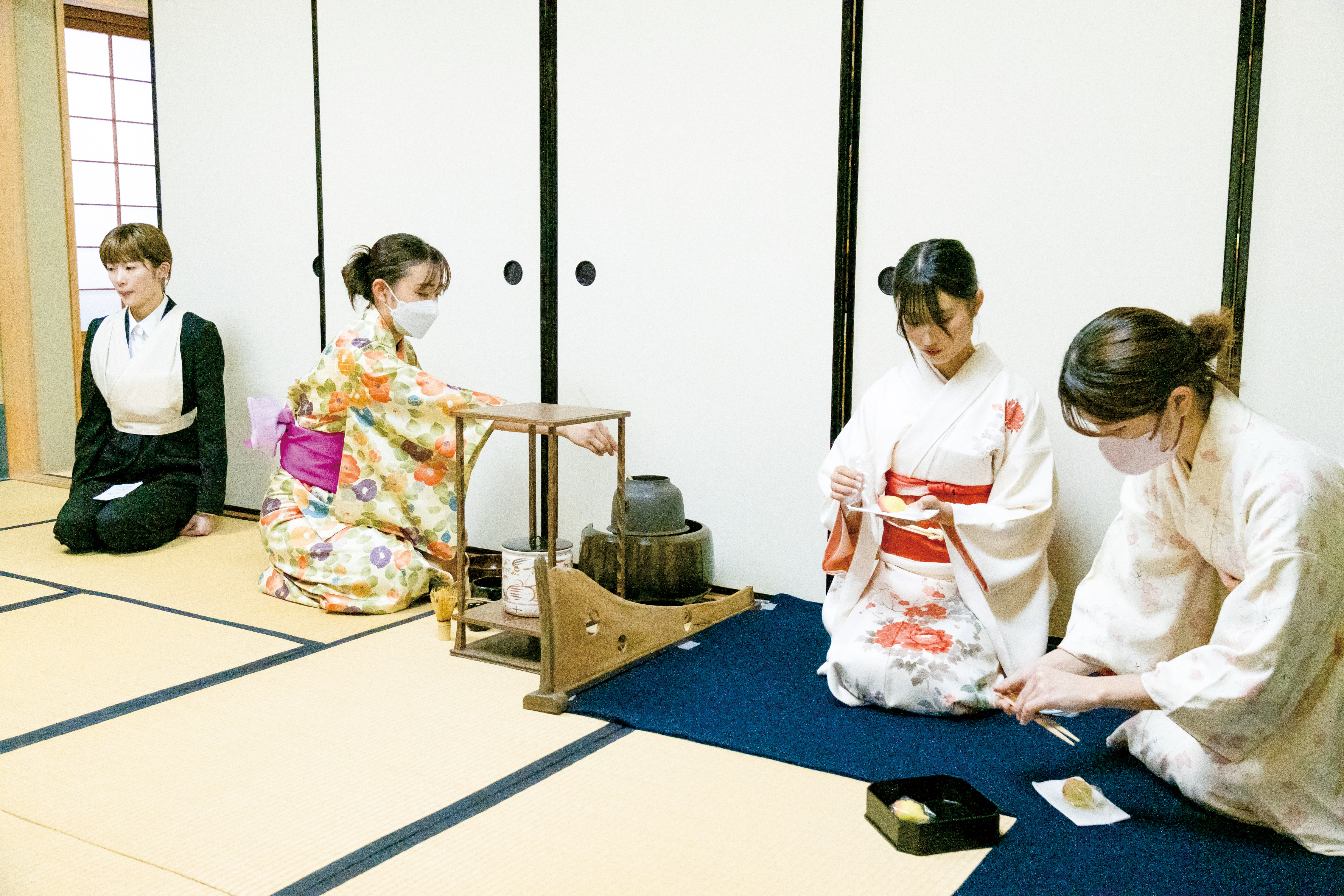月に3回ほど、外部の先生に指導いただきます。また年に3回ほどお茶会を行います。